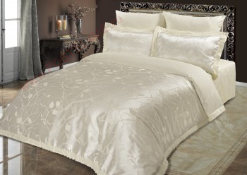 Ткань верха пододеяльника и маленьких наволочек - хлопок сатинового переплетения с содержанием высококачественной вискозной нити, которая и дает эффект блеска.